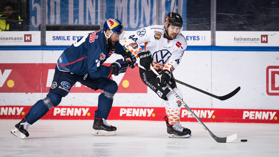 Begonnen hatte die Partie bereits mit einer kalten Dusche für Schwarz-Orange. Keine drei Minuten waren gespielt, als die Münchener mit ihrer ersten echten Möglichkeit in Führung gingen. Justin Schütz tauchte frei vor Dustin Strahlmeier auf und traf durch die Beine des Gäste-Goalies. Mitte des ersten Drittels landete ein abgefälschter Schuss von Daryl Boyle im Netz – 2:0 für die Red Bulls (11.).